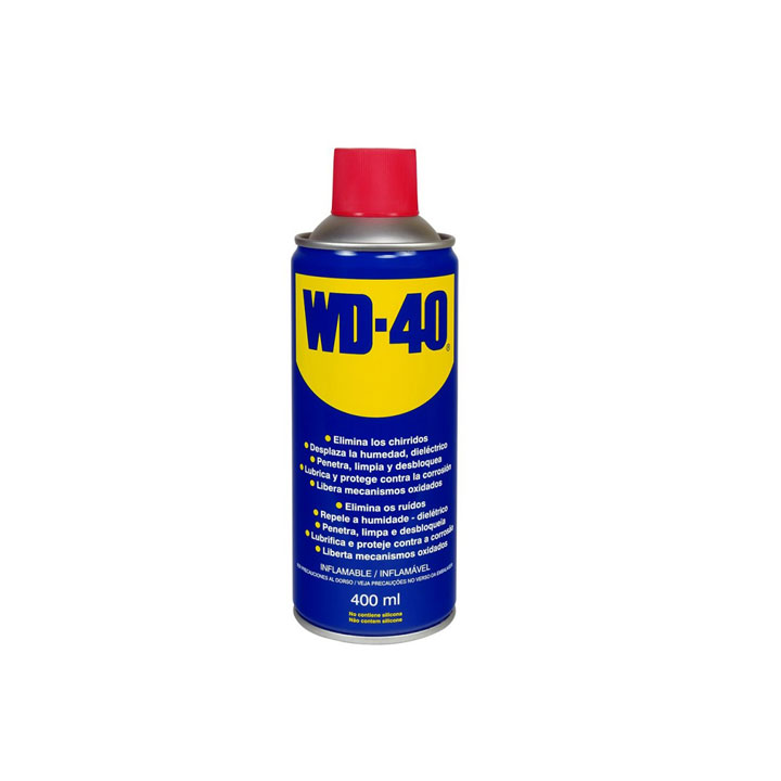 Aceite lubricante multiuso WD-40 400ml, desplaza la humedad para prevenir el óxido y proteger sistemas eléctricos. Penetra para aflojar piezas atascadas .Lubrica para que todo funcione como bisagras, rodamientos, cadenas y engranajes, adecuado para limpiar cromados y cualquier superficie metálica, elimina también adhesivos y restos de pintura, así  como el aceite, suciedad, grasa y mugre.Protege las superficies de metal contra el óxido y la corrosión y fácil de usar-