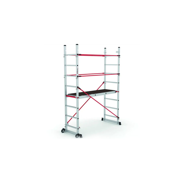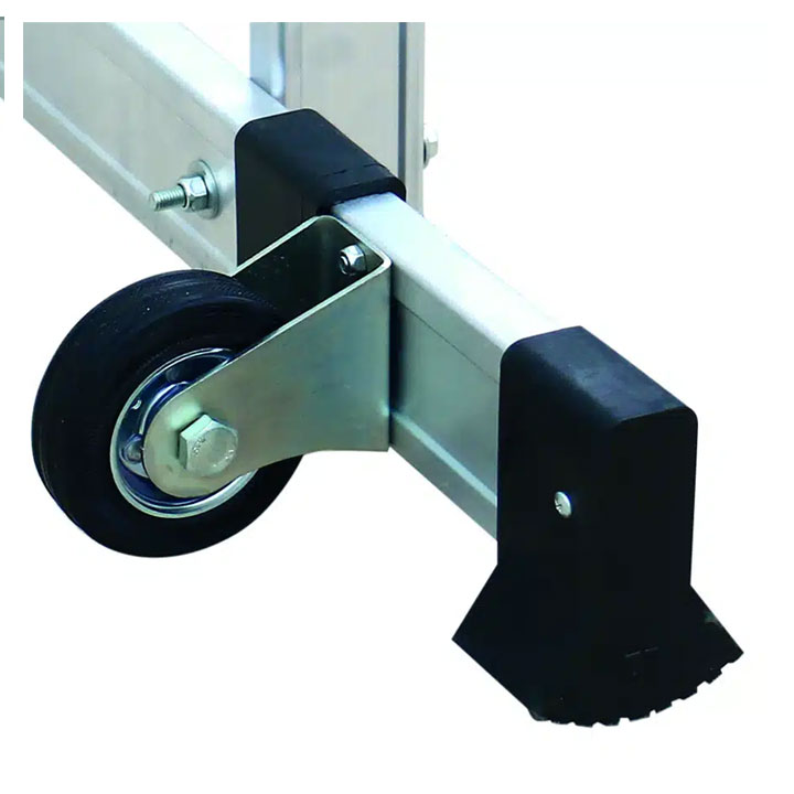 Fabricado con un perfil de 75×1,3 mm. La base estrecha del andamio Tyrion lo hace ideal para trabajar en pasillos y espacios reducidos. Además,cuenta con una base estabilizadora con ruedas y tacos de goma antideslizante, asegurando la estabilidad y evitando movimientos indeseados durante el uso. El andamio Tyrion cumple con los estándares de calidad EN131 y tienen una carga máxima de 150 kg.