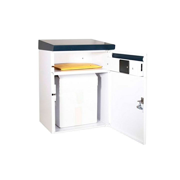 Buzón de paquetería iPackBox Plus blanco BTV, destinados a viviendas unifamiliares, estos buzones de paquetería individuales son gestionables con el teléfono móvil, a través de la aplicación Send2me. Con su tecnología solucionan uno de los grandes problemas de la compra online: el de la ausencia del destinatario del paquete en el momento de la entrega. En el iPackBox, el repartidor podrá depositar los paquetes sin necesidad de que el propietario de la vivienda se encuentre en el hogar. Fabricado en cuerpo y tejado de acero galvanizado de gran resistencia y disponible en dos modelos: iPackBox estándar, con un solo compartimento para recibir paquetes e iPackBox Plus, con doble compartimento, también para recibir cartas. Medidas : ( base x altura x fondo en mm ): 387 x 570 x 300.