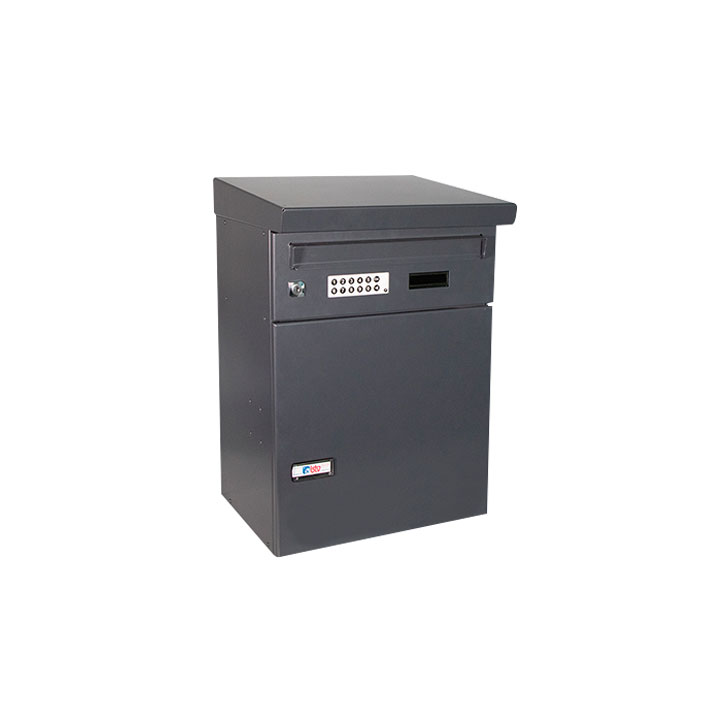 Buzón de paquetería iPackBox Plus negro BTV, destinados a viviendas unifamiliares, estos buzones de paquetería individuales son gestionables con el teléfono móvil, a través de la aplicación Send2me. Con su tecnología solucionan uno de los grandes problemas de la compra online: el de la ausencia del destinatario del paquete en el momento de la entrega. En el iPackBox, el repartidor podrá depositar los paquetes sin necesidad de que el propietario de la vivienda se encuentre en el hogar. Fabricado en cuerpo y tejado de acero galvanizado de gran resistencia y disponible en dos modelos: iPackBox estándar, con un solo compartimento para recibir paquetes e iPackBox Plus, con doble compartimento, también para recibir cartas. Medidas : ( base x altura x fondo en mm ): 387 x 570 x 300.