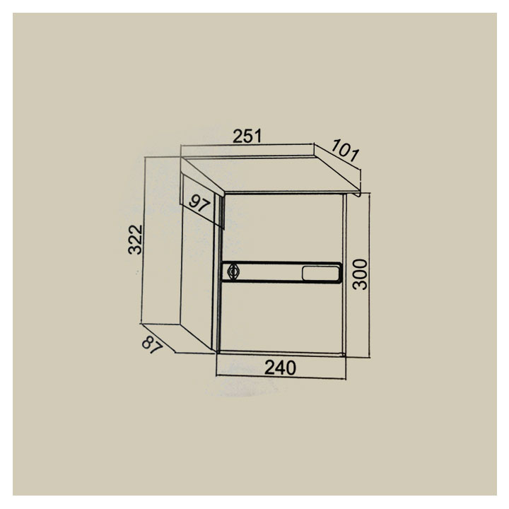 Buzón serie Colonia color verde BTV, construidos en acero, con puerta de acero galvanizado y pintado. Cerradura Grado I según normativa EN-13724. Medidas : ( base x altura x fondo en mm ): 240 x 300 x 101. Boca ranura: 203 x 28 mm. Peso: 1´9  kg.