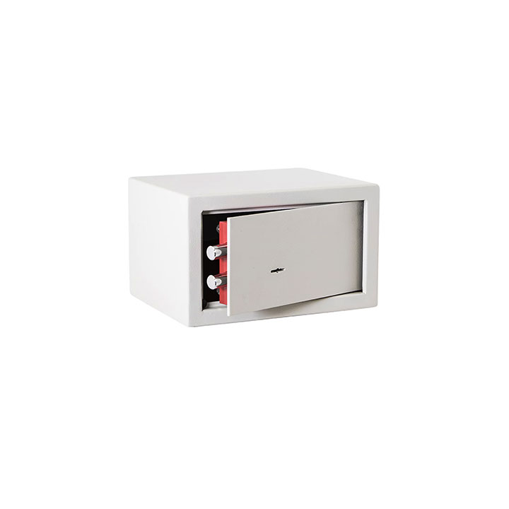 Caja fuerte serie Mini Vault 23 BTV, caja fuerte de apertura mecánica. Su manejo es extremadamente sencillo, lo que la hace idónea para su uso en hogares. Espesor puerta: 4 mm. Espesor de cuerpo: 2 mm. Bulones: 2 a Ø 20 mm. Color: gris claro ( RAL 7047 ). Orificios anclajes: 2 pared / 2 suelo Ø 12 mm. Sistema de cierre: cerradura de gorjas. Medidas: ( alto x ancho x fondo ) Exterior: 170 x 280 x 230 mm. Interior: 165 x 275 x 185 mm.