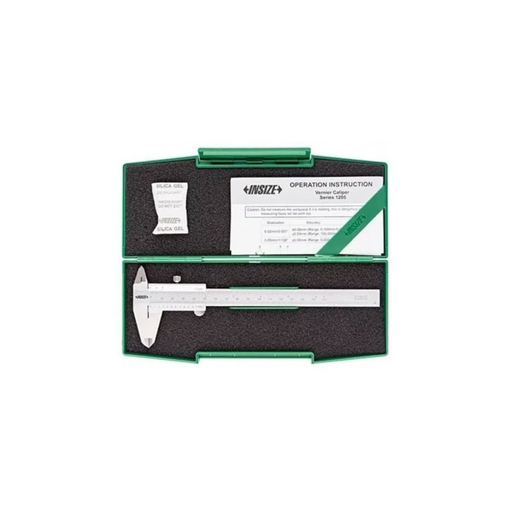 Calibre pie de rey analógico Insize 1205-150S ( 0-150X0,05mm/0-6×1/128″ ), calibre pie de rey 0-150 mm. Graduación 0,05 mm. – 1/128″. Precisión ±0,05 mm.