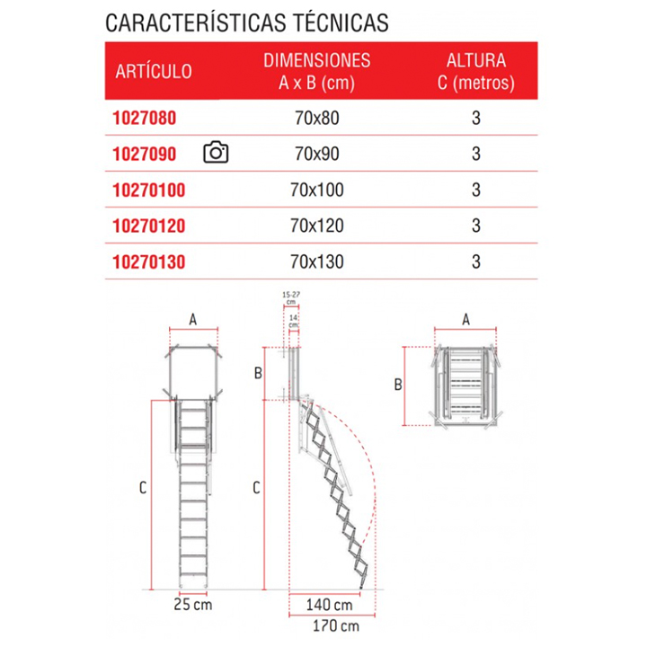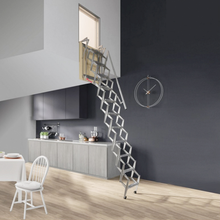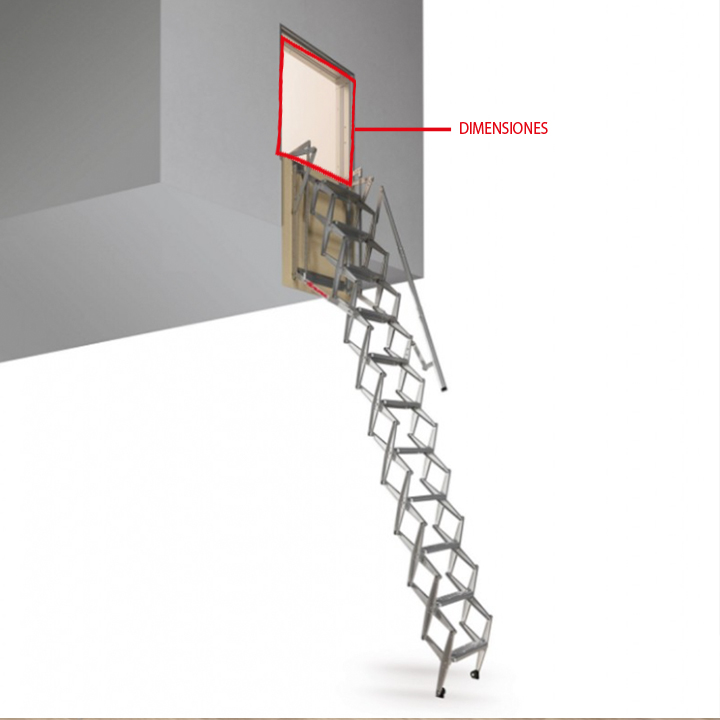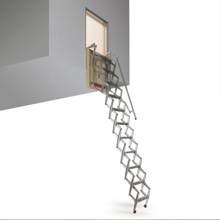 Escalera escamoteable para pared en acero galvanizado RE102, de acero galvanizado, fabricado en acero galvanizado. Altura al suelo: 3 metros. Disponible varias dimensiones del hueco del techo.
