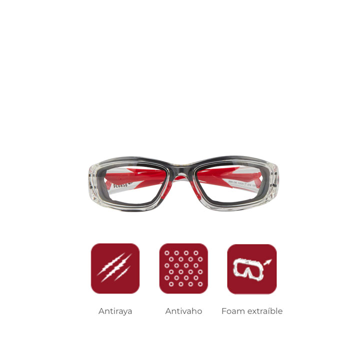 Gafas de seguridad Pegaso F1 990.03, gafa de protección envolvente dotada de un puente y varilla coinyectadas, con goma antideslizante y foam interior extraíble. Diseño, ergonomía y confort nivel premium. Ref: 990.03.