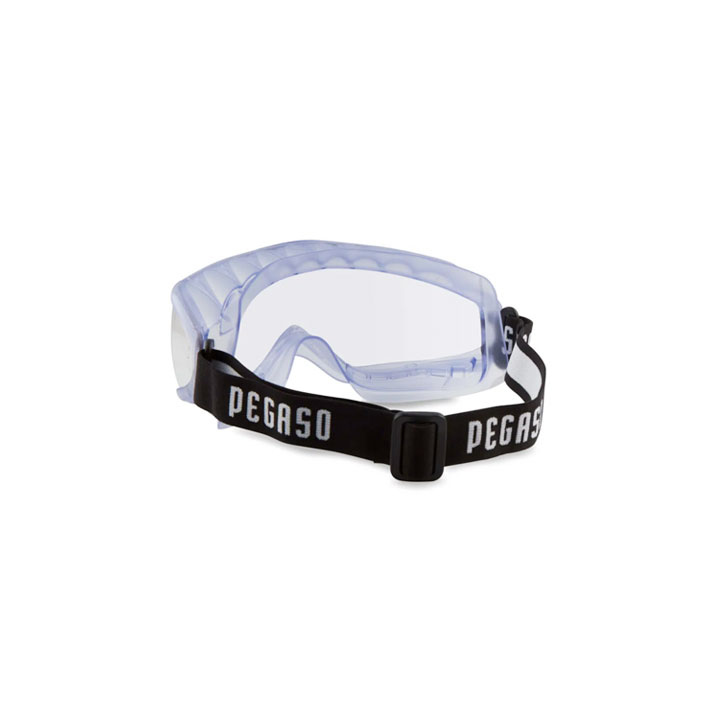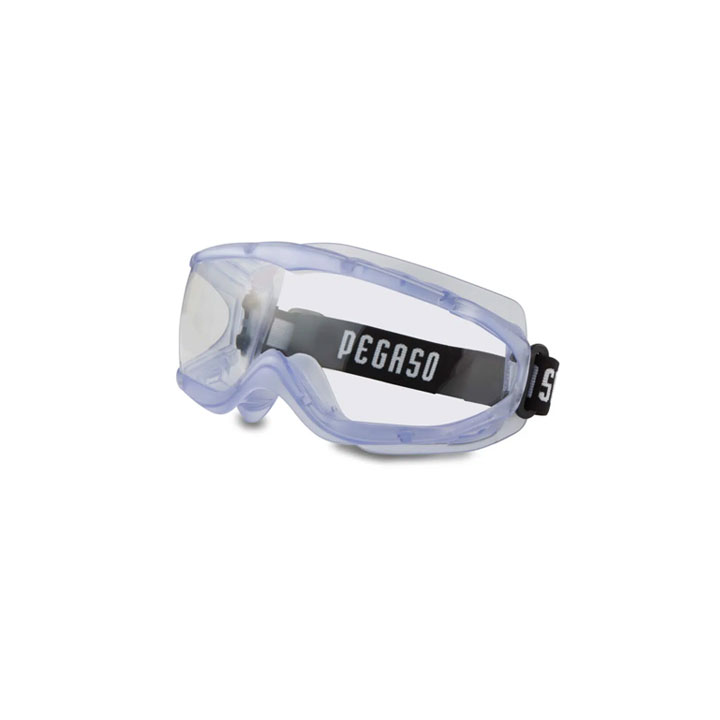 Gafas de seguridad Pegaso XL 21, gafa de seguridad antilíquidos. Montura integral con gran visión panorámica. Frontal sobreinyectado en goma antideslizante. Su diseño está pensado especialmente para permitir indistintamente su uso sobre gafas correctoras o sin ellas. Ref: 21.