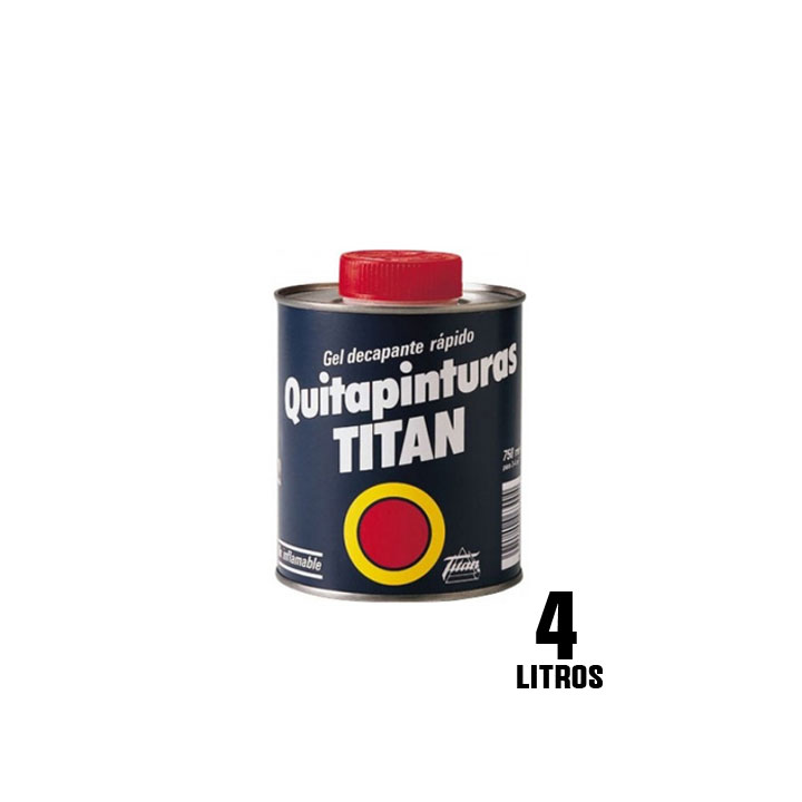 Gel decapante rápido quitapinturas Titan ( 4 litros ), decapante tipo gel sin cloruro de metileno, de acción rápida y eficaz. Fácil y cómoda aplicación sin goteos ni derrames por su naturaleza gelatinosa. Se puede doblar y triplicar su rendimiento, según circunstancias, extendiendo de nuevo mediante la espátula sobre la pintura a eliminar, los residuos obtenidos.