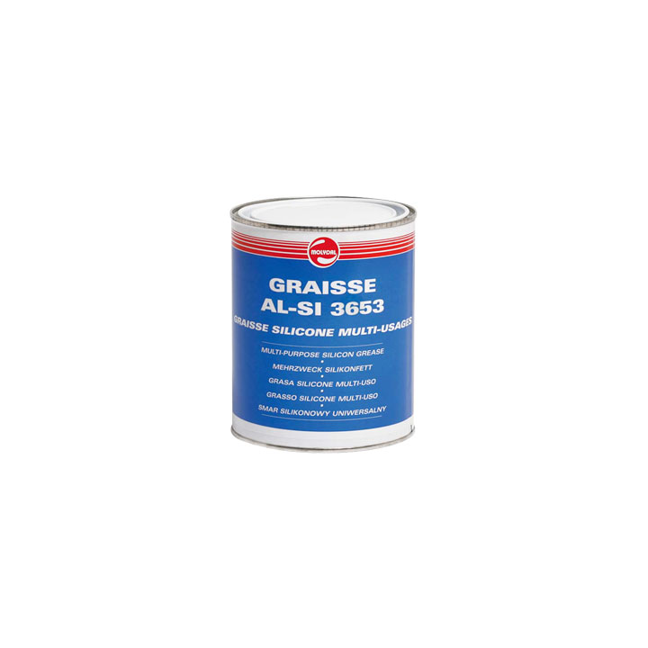 Grasa de silicona Molydal Al-Si 3653 multiusos 1 kg, grasa que contiene aceites siliconas para una lubricación delicada, que resiste a la oxidación y al envejecimiento. Insoluble al agua. La grasa AL-SI 3653 está especialmente formulado para una lubricación de larga duración en industria textil, motores eléctricos, contractores, regulación automática de hornos, engrase para toda la vida de pequeños mecanismos. Color: blanco. Temperatura de utilización: -45ºC a + 250ºC. Aceite base: sintético. Grado NLGI: 2/3