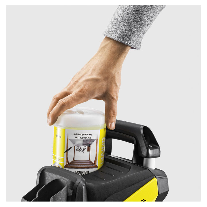 Equipamiento Quick Connect en el lado del equipo. Aplicación de detergente mediante: Sistema Plug ‘n’ Clean. Asa telescópica. Motor refrigerado por agua. Filtro de agua integrado. Conexión App vía Bluetooth. Incluido en el equipamiento de serie: Pistola de alta presión: G 180 Q Smart Control. Multi Jet 3 en 1. Manguera de alta presión: 10 m. Adaptador de conector para mangueras de riego A3/4″.