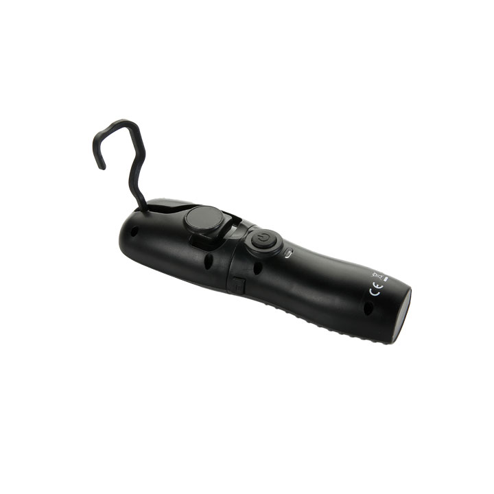 Linterna recargable Alyco 3W COB IP20, linterna de mano con 1 foco COB de 3 Watios (220 Lumen), con 1 gancho y 2 imanes. La estructura es de plástico rígido.