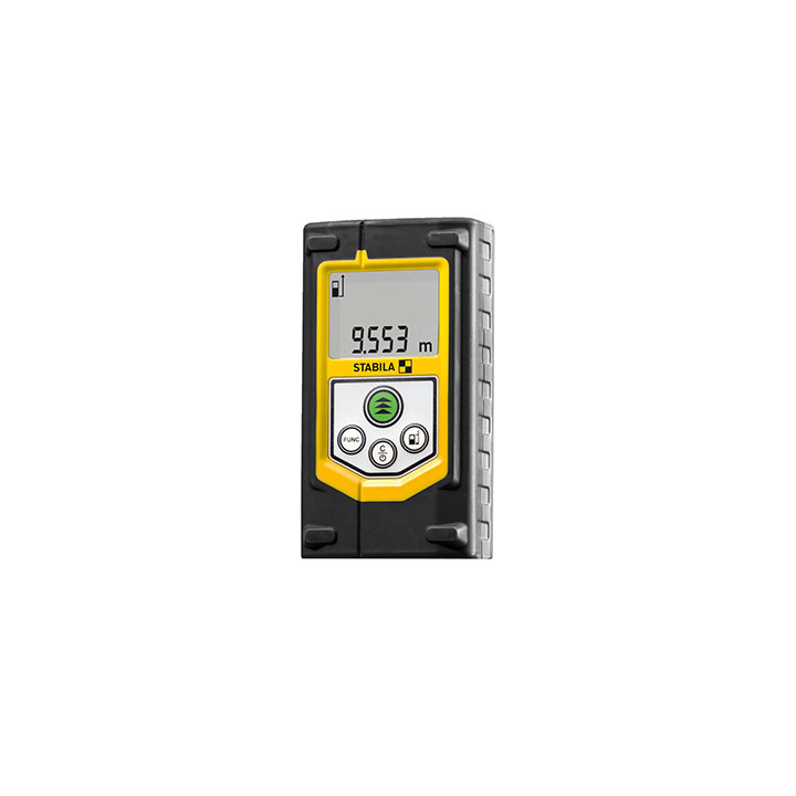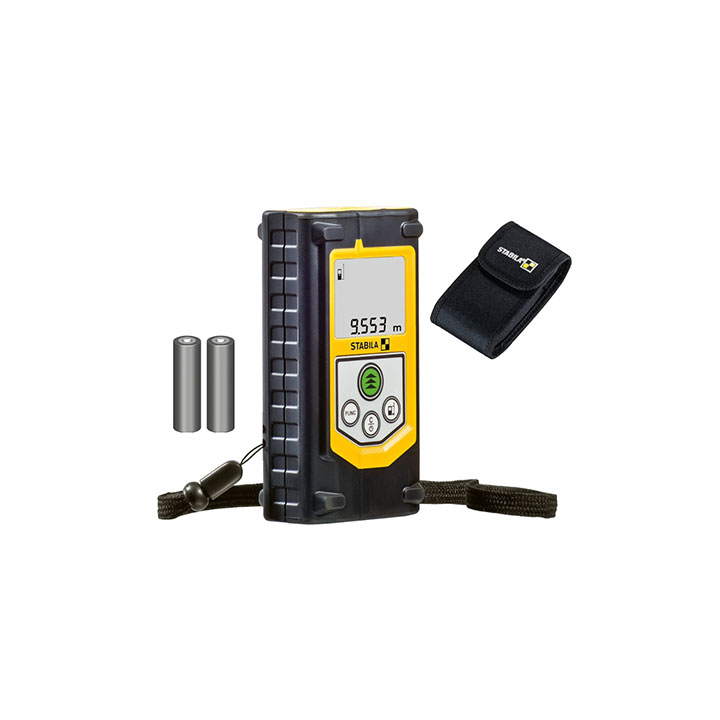 Medidor de distancia láser Stabila LD 320, aparato compacto con 8 funciones de medición: longitud, superficie, volumen, medición continua, alturas con 2 y 3 puntos de medición, replanteo, tracking mínimo y máximo. Rápida determinación de los resultados de medición. Con dígitos de gran tamaño y pantalla iluminada para una sencilla lectura. Con carcasa resistente a los impactos con recubrimiento Softgrip de STABILA anti-choque. Punto de mira integrado en la carcasa para la localización exacta de objetivos incluso a grandes distancias. Medidor de distancia con homologación ISO: los datos sobre el alcance (0,05-60 m) y la precisión (± 1,5 mm) cumplen la norma internacional ISO 16331-1. Clase de protección IP 40: protección contra la penetración de cuerpos sólidos extraños con un diámetro de > 1 mm. Incluye funda para cinturón y correa de mano y 2 pilas AAA.