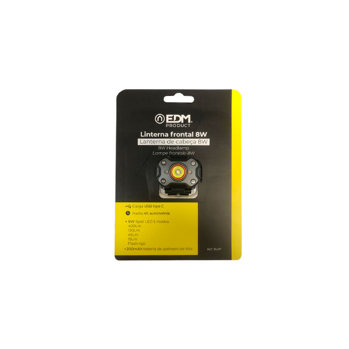 Mini linterna frontal EDM 1 led 8W 400 lm recargable