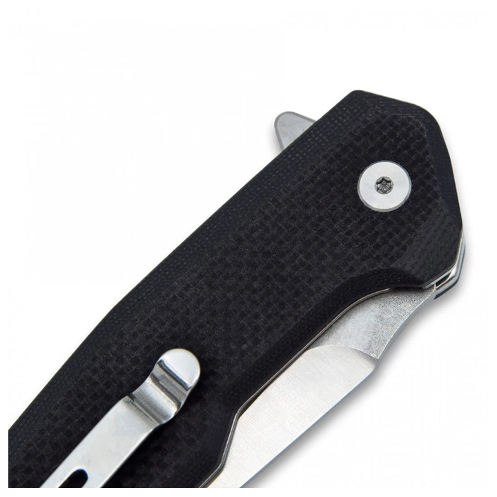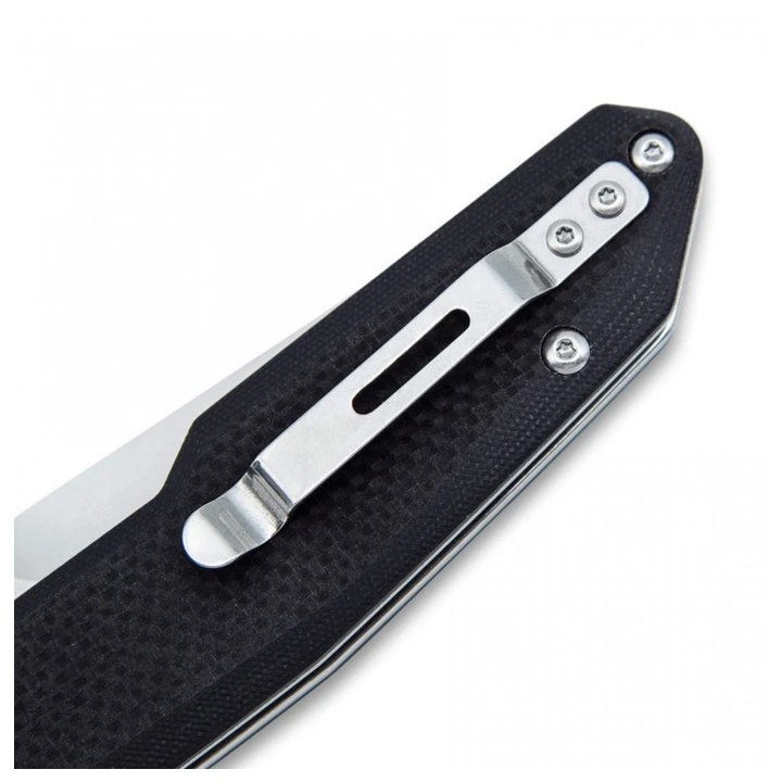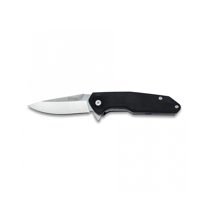 Navaja Tactic 3 Claveles, de acero inox 8Cr, con mango G10 negro. Hoja 85x26x3,2 mm. Mango 117 mm. En acero inoxidable y mango G10 negro. La hoja mide 85x26x3,2 mm y el mango 117 mm. Incorpora clip para el cinturón desmontable. Bloqueo en el cuerpo. Apertura una mano. Ref: 03804.
