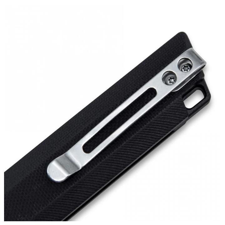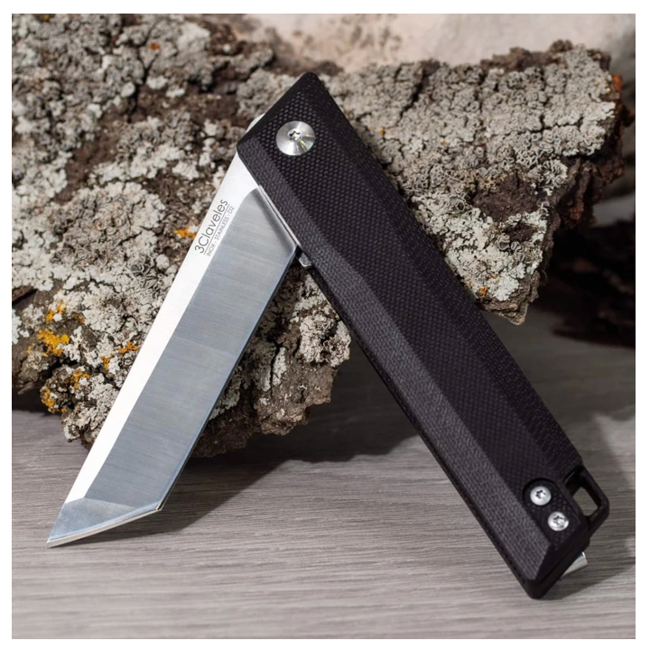 Navaja Tanto 3 Claveles, en acero inox D2, con mango G10 textura. Hoja 85 x 18 x 3,3 mm . Mango 110 mm. En acero inoxidable y mango G10. La hoja mide 85x18x3,3 mm y el mango 110 mm. Incorpora clip para el cinturón desmontable. Bloqueo en el cuerpo. Apertura dos manos. Agujero pasa cabos. Ref: 03800.