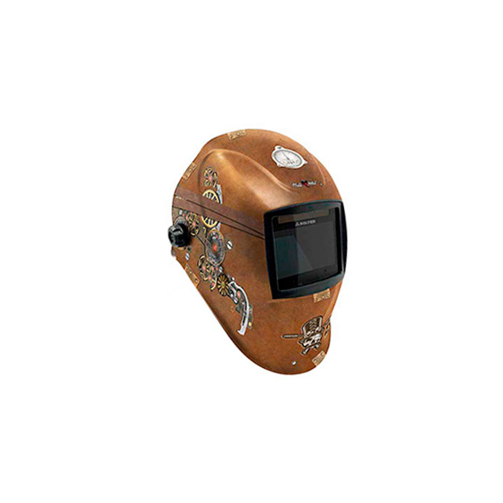Pantalla de soldadura Solter Hellmet Steampunk, la pantalla electrónica de soldadura HELLMET JOB es el máximo exponente de protección ocular para el soldador más exigente. Todo, sin mermar la productividad ya que incorporan soluciones tecnológicas de vanguardia. Filtro ADF protector con tecnología TrueColor, que permite ver colores reales durante el proceso de soldadura, aumentando la claridad y dando una sensación de visión el 3D real. Calidad de filtro máxima 1/1/1/1. 4 sensores, evitando zonas oscuras y que el filtro se abra durante el proceso. Arnés ergonómico con 4 puntos de apoyo. Gran campo de visión 100x60mm. Tecnologia TRUE COLOR,