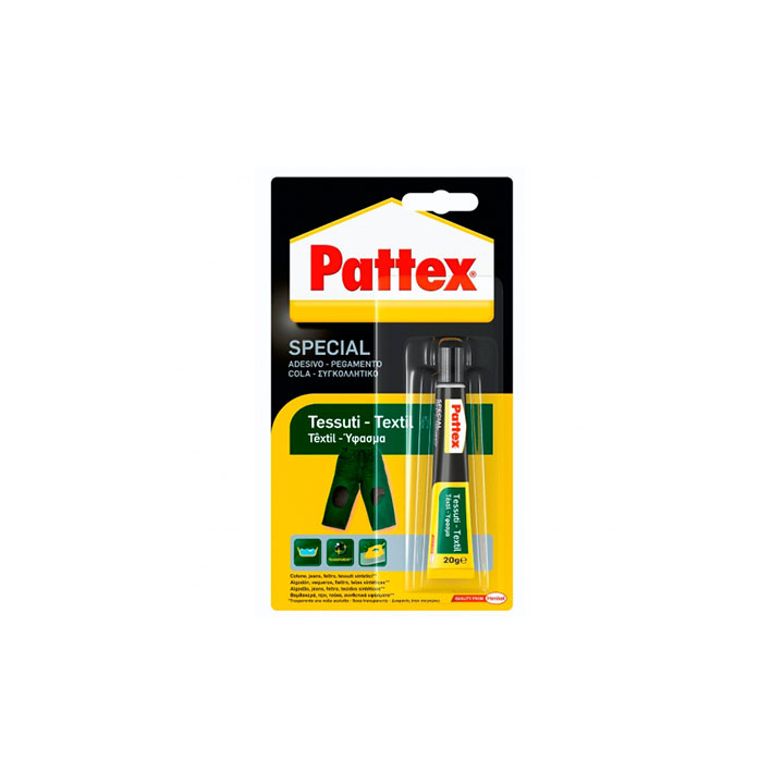Pegamento Pattex especial textil transparente 20 g, específico para tejidos. Resistencia a los lavados y al planchado.