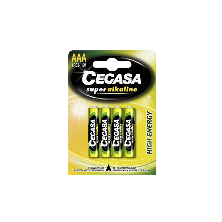 Pilas super alcalinas Cegasa LR03 1,5V AAA ( 4 unidades ), capaces de equipar todo tipo de aparatos, seguras y fabricadas con elementos no contaminantes, ‎AAA , compatible con dispositivos que usen pilas LR03/AAA.