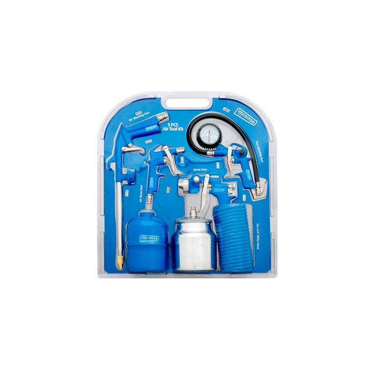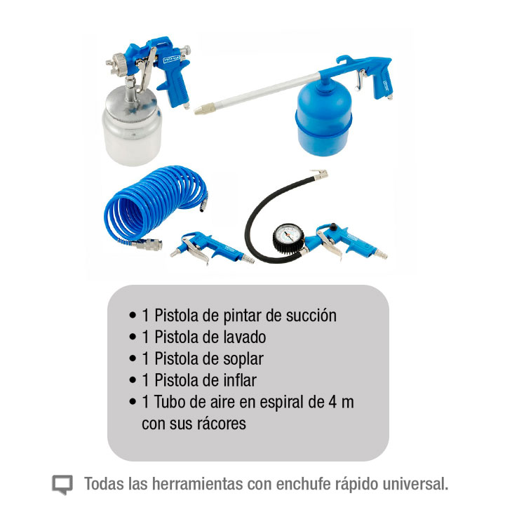 Pistola de succión Imcoinsa 0W14 ( kit de 5 piezas ), el kit incluye: pistola de pintar succión, pistola de lavado, pistola de soplar, pistola de inflar, manguera de 4 m.
