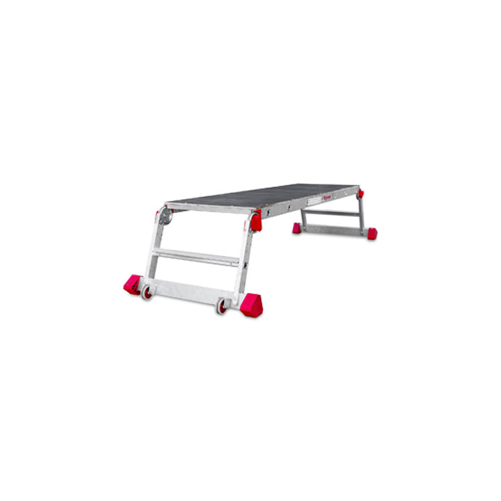 Plataforma de trabajo plegable PLA1 50 cm, peldaño 1 x 1, la PLA es una plataforma de trabajo plegable con ruedas y amplio plano de trabajo fabricado con una madera especial resistente al agua. Estructura ligera y robusta fabricada en aluminio con plano de trabajo de 206×60 cm. Se accede a la plataforma mediante una escalera con peldaños antideslizantes de 8 cm de profundidad. Este tipo de plataforma se suele utilizar en obras por profesionales que no necesitan alcanzar grandes alturas pero quieren una plataforma amplia donde moverse cómodamente ya que está pensada para trabajar a una altura máxima de 300 cm; altura ideal para trabajar en el interior de viviendas. También es muy utilizada en industrias para realizar tareas de mantenimiento a maquinarias o entre instaladores para montajes de máquinas de aire acondicionado; así como entre pintores. Una vez plegada es fácil de transportar y ocupa poco espacio. Se desplaza mediante dos ruedas de 80 mm de diámetro instaladas en la parte trasera. Este producto cumple con la normativa europea EN 131 y se entrega junto con el certificado de conformidad y el manual de instrucciones. La carga máxima que aguanta es de 150 kg.