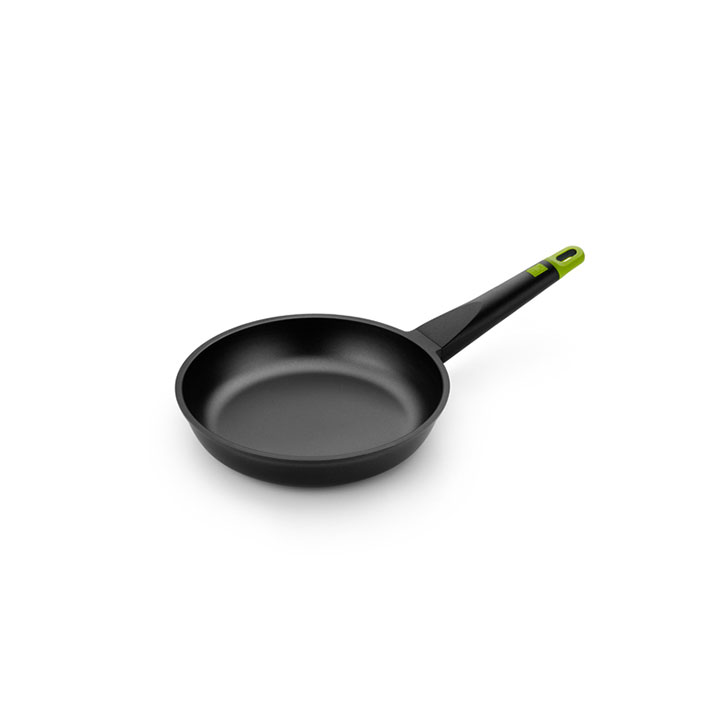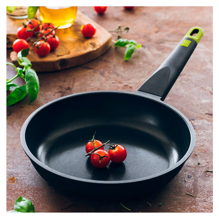 Sartén Foodie Bra, ideal para el día a día en la cocina, siendo una fantástica opción por su relación calidad/precio, unidos a un diseño moderno. Es una sartén robusta fabricada en aluminio fundido con revestimiento antiadherente tricapa Teflon Innovations libre de PFOA. Es apta para cocinar en todo tipo de cocinas (incluida la inducción) gracias a su fondo difusor full induction. Además tiene un excelente reparto de la temperatura para una cocción perfecta de todas nuestras recetas. Características: Fabricada en aluminio fundido muy resistente a la deformación (5,5mm de espesor en la base). Revestimiento antiadherente tricapa Teflón Innovations 100% libre de PFOA. Fondo full induction compatible con todas las fuentes de calor incluida la inducción. Mango ergonómico en color negro con silicona de color verde para un agarre agradable y seguro. Recubrimiento muy resistente. Perfecta para un uso más intensivo. Ahorro energético. Medidas: 18 cm ( diámetro base 12,4 cm – altura 7 cm ). 20 cm (  diámetro base 14,2 cm – altura 4,9 cm ). 22 cm ( diámetro base 15,8 cm – altura 5 cm ). 24 cm ( diámetro base 16,9 cm – altura 5,2 cm ). 26 cm ( diámetro base 19,1 cm – altura 5,2 cm ). 28 cm ( diámetro base 19,8 cm – altura 5,3 cm ). 30 cm ( diámetro base 22,2 cm – altura 5,5 cm ).