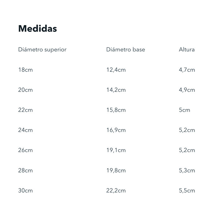 18 cm, 20 cm, 22 cm, 24 cm, 26 cm, 28 cm, 30 cm
