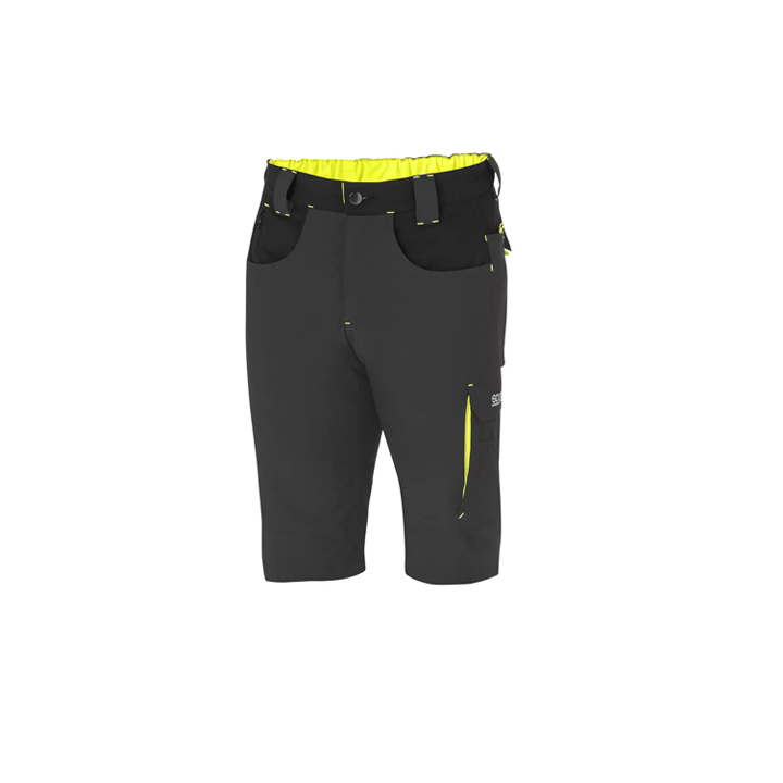 Tech Light Bermuda Laredo Sparco Gray-Yellow, shorts ligeros tech. Peso: 170 g/m². Composición: 90% nylon – 10% spandex. Especificaciones: Cierre con cremallera y botón. Bolsillo lateral oculto con cierre de cremallera. Anillo para portacarnet en el pasador de cinturón delantero izquierdo. Rayas reflectantes de alta visibilidad. Conforme a la norma EN ISO 13688:2022 – CAT.1.