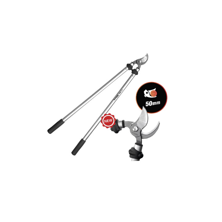 Tijera de poda dos manos Altuna 62-80, tijera de poda dos manos profesional 80 cm, robusta, liviana, con corte de precisión para uso profesional. Cabeza corte bypass de acero forjado. Mangos de aluminio forjado con fundas de ABS. Capacidad de corte 50 mm. Poda en frutales de todo tipo; manzanos, cerezos, nogales, olivos, almendro, viñedos, entre otros, en plantas de jardín (ramas gruesas de rosales, etc.)
