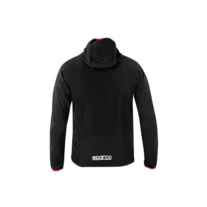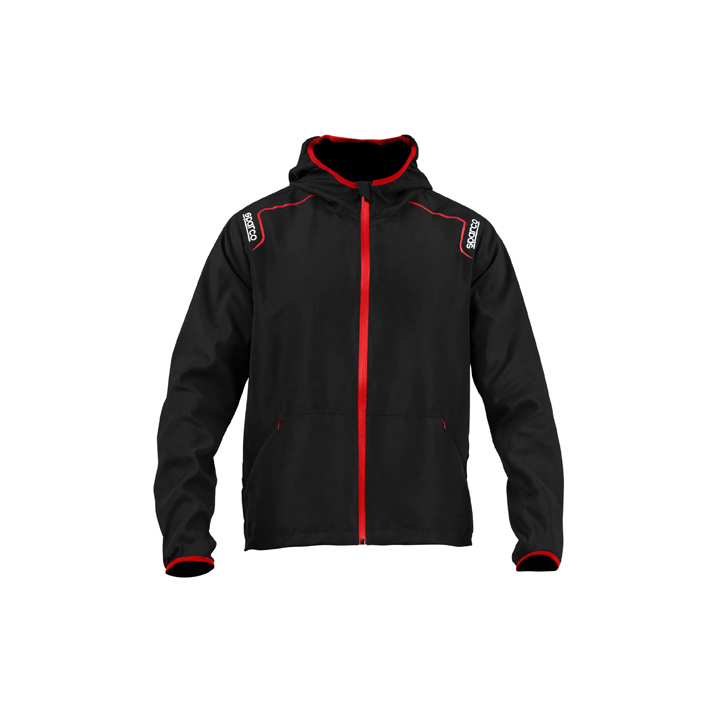 WindStopper Cortavientos Wilson Sparco Black-Red, chaqueta cortavientos. Chaqueta ligera cortavientos con capucha, repelente al agua. Peso: 100 g/m². Composición: 100% poliéster. Especificaciones: Tejido de poliéster suave y ligero, repelente al agua. Cremalleras recubiertas con tiradores de goma. Puños y dobladillo elásticos.